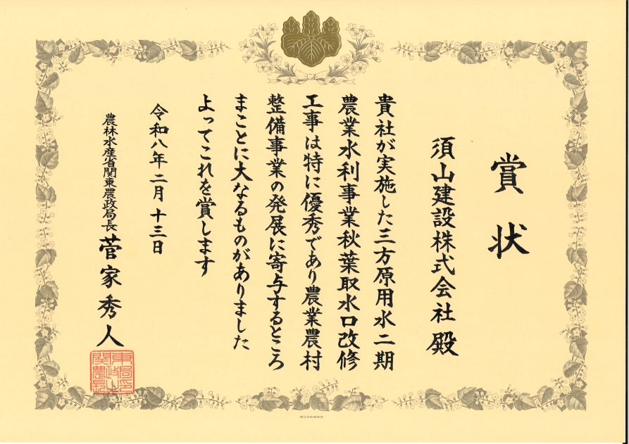 2026年2月13日(金)、さいたま新都心(埼玉県)にて、令和7年度関東農政局優良工事表彰式が開催されました。