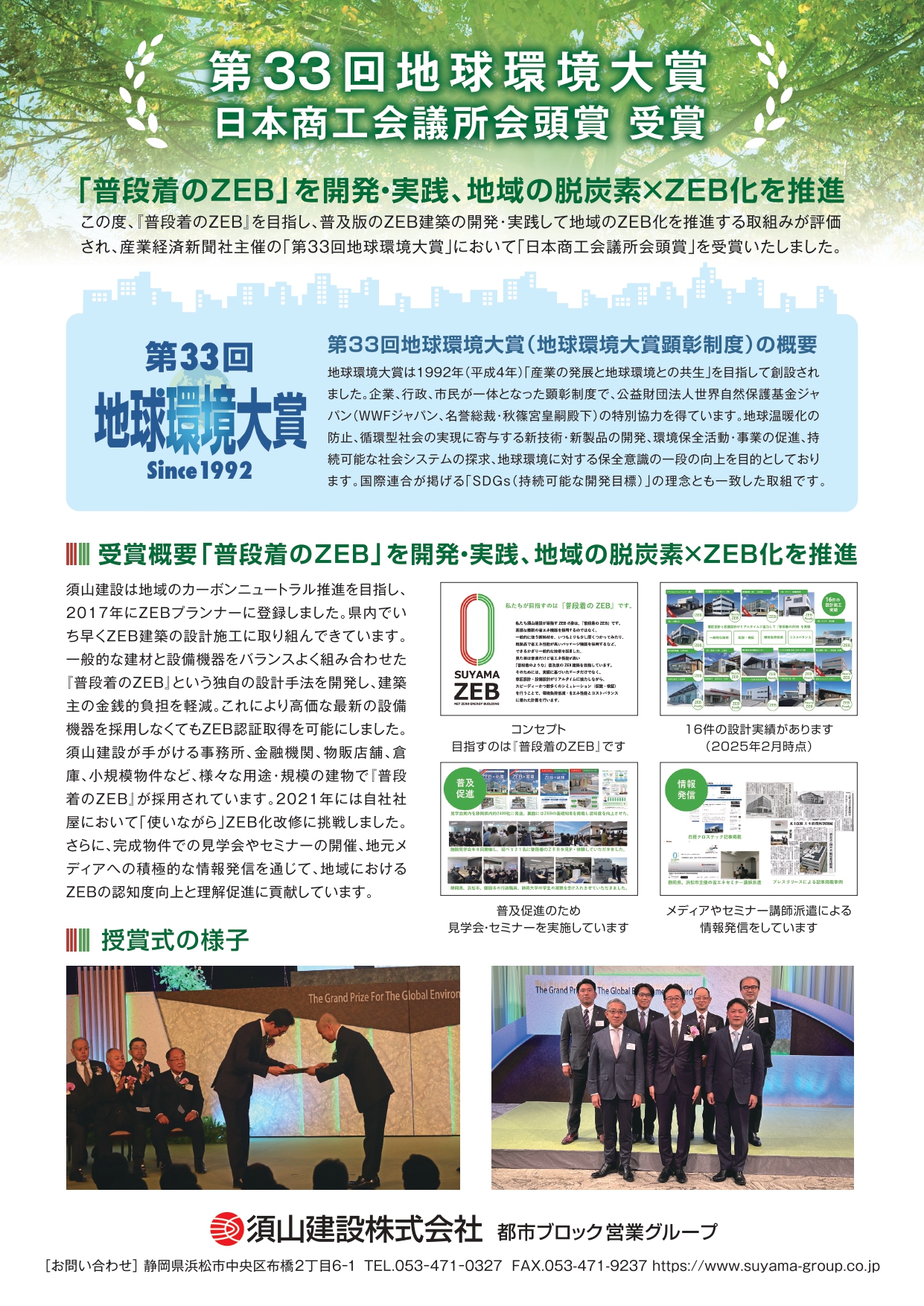 また、裏面では『第33回地球環境大賞 日本商工会議所会頭賞』受賞に
