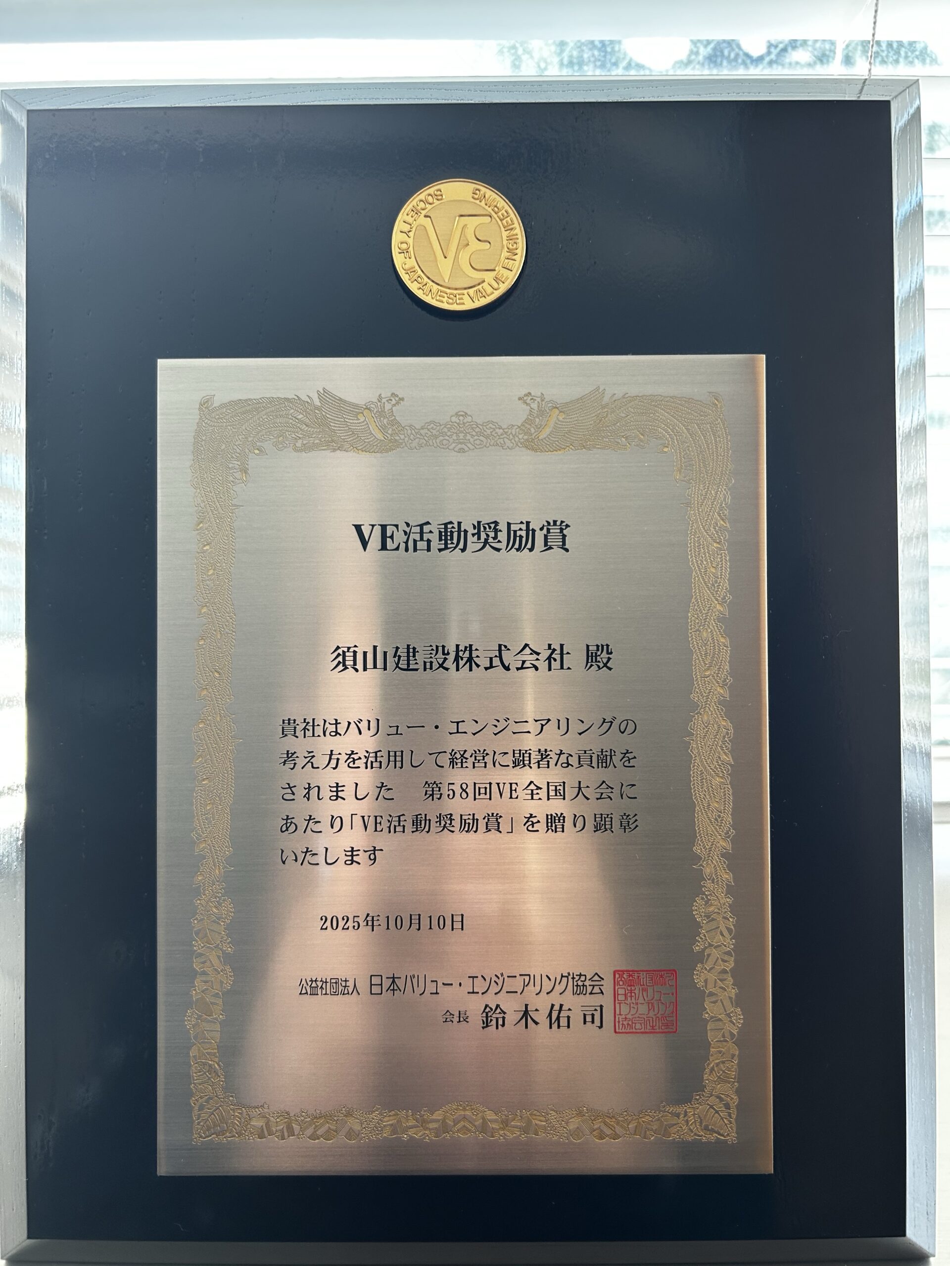 当社は中小企業として初めてとなる「VE活動奨励賞」を受賞いたしました。